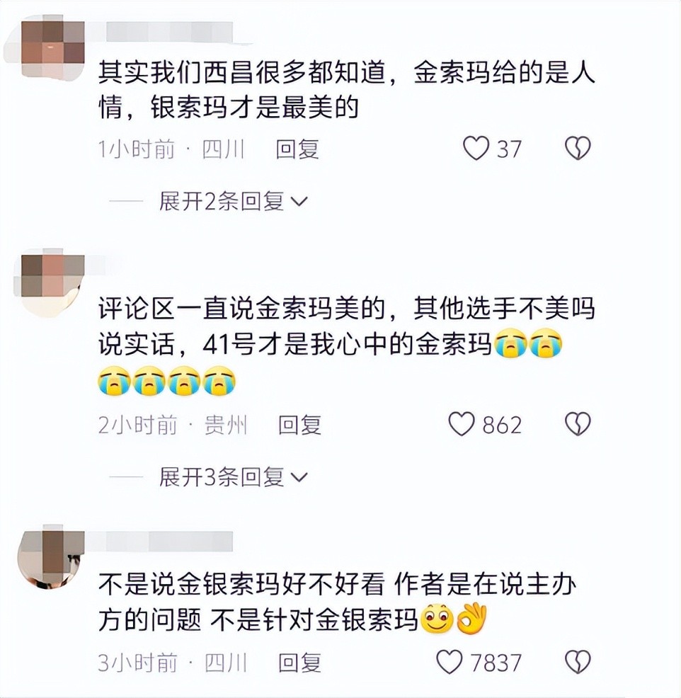 “其实我们西昌很多都知道,金索玛给的是人情,银索玛才是最美的” 不是说金银索玛好不好看作者是在说主办方的问题不是针对金银索玛◎