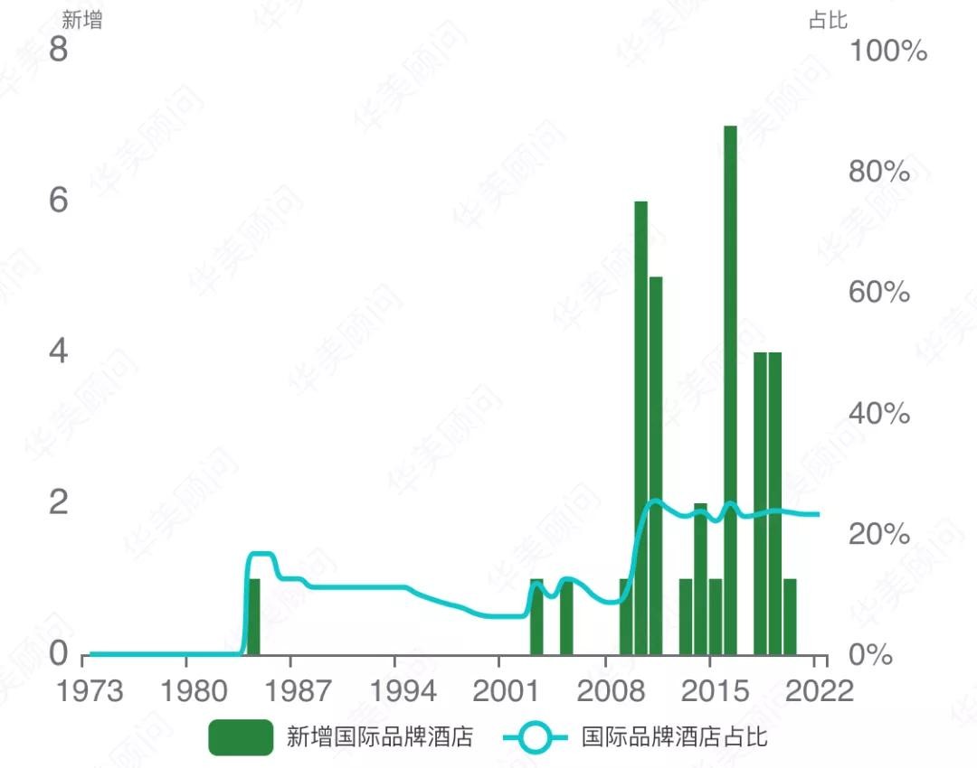 1913年,第一家五星级酒店,杭州新新饭店开业;1984年,第一家国际品牌五星级酒店,杭州香格里拉饭店开业;2009年,杭州五星级酒店数量增速开始明显提高;2016年,G20杭州峰会召开,大量五星级酒店集中入市。