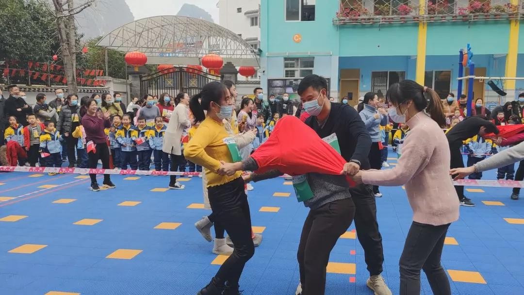 12月22日上午从阳朔镇第一幼儿园的校园里不时传出阵阵欢呼声、喝彩声、欢笑声该园2020年度亲子趣味运动会吸引了数百名小朋友和家长共同参与