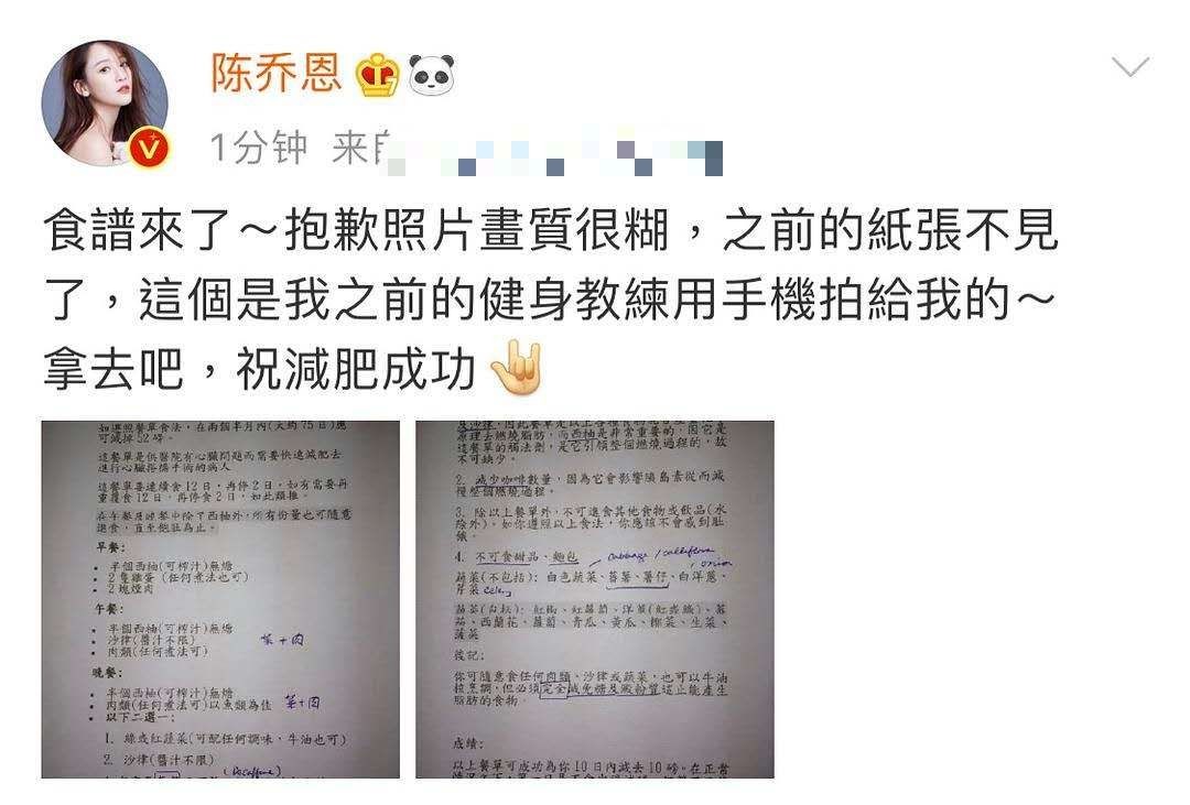 另一位大家熟悉的明星陈乔恩,她也曾因对身材不满而选择了近乎苛刻的减肥食谱,虽然也有肉类,但种类少的可怜,而且蔬菜也不是什么都能吃的,像土豆、红薯淀粉量高的蔬菜都在禁食范围。