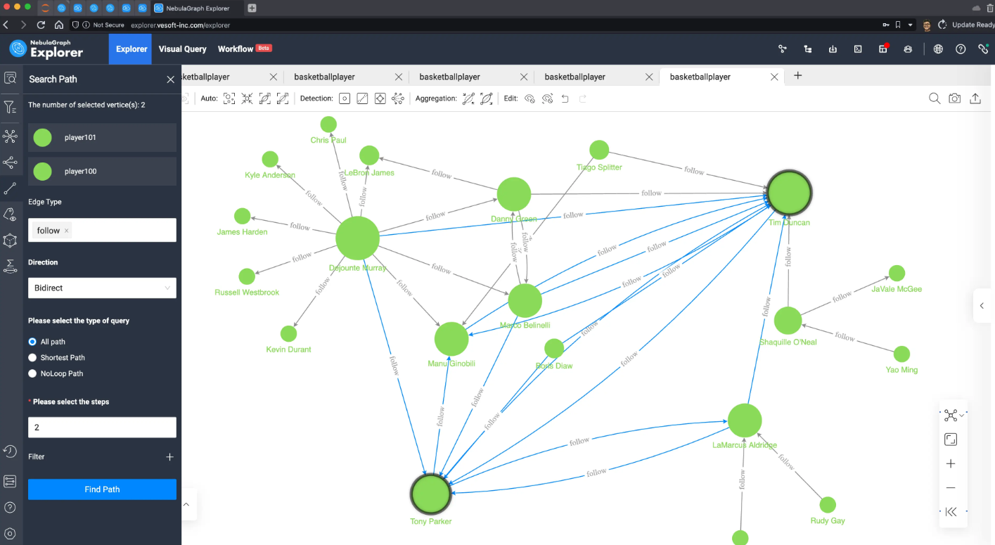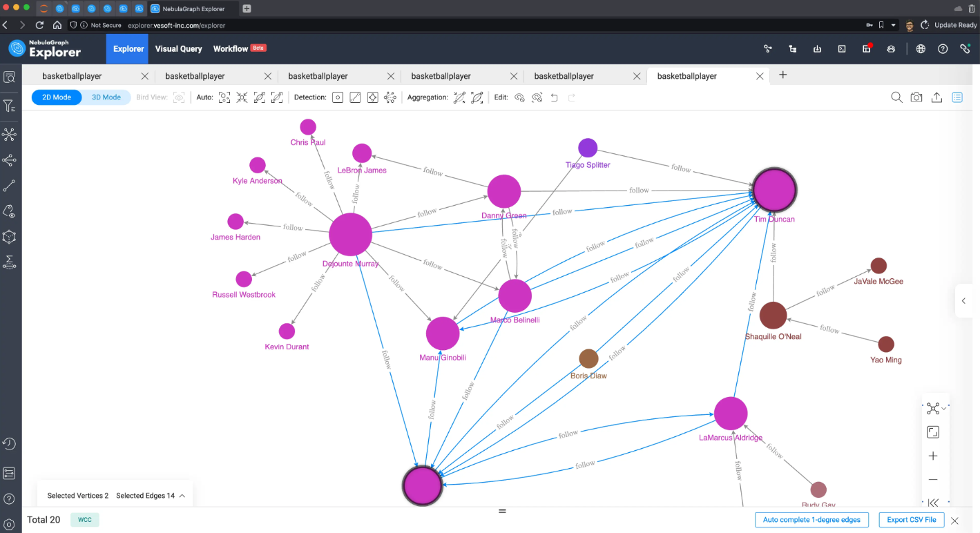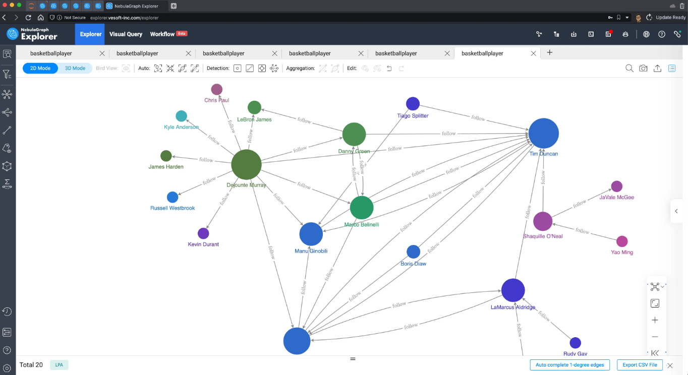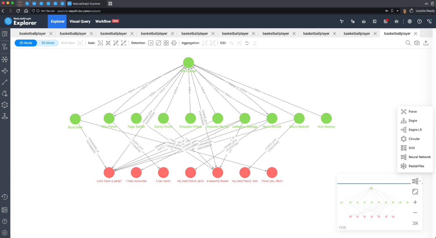 因为数据量太小了,这里可以把所有数据在 NebulaGraph Explorer 中进行渲染出来: