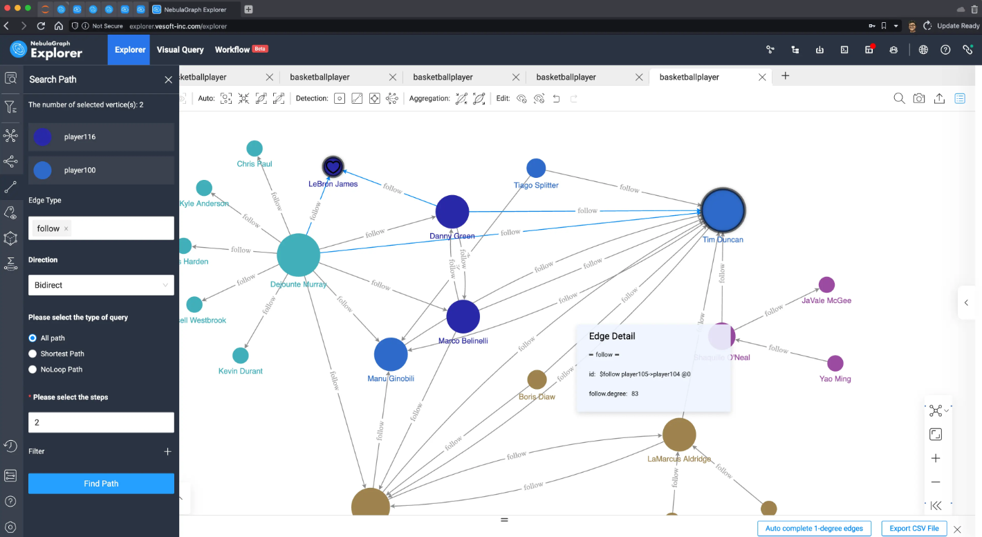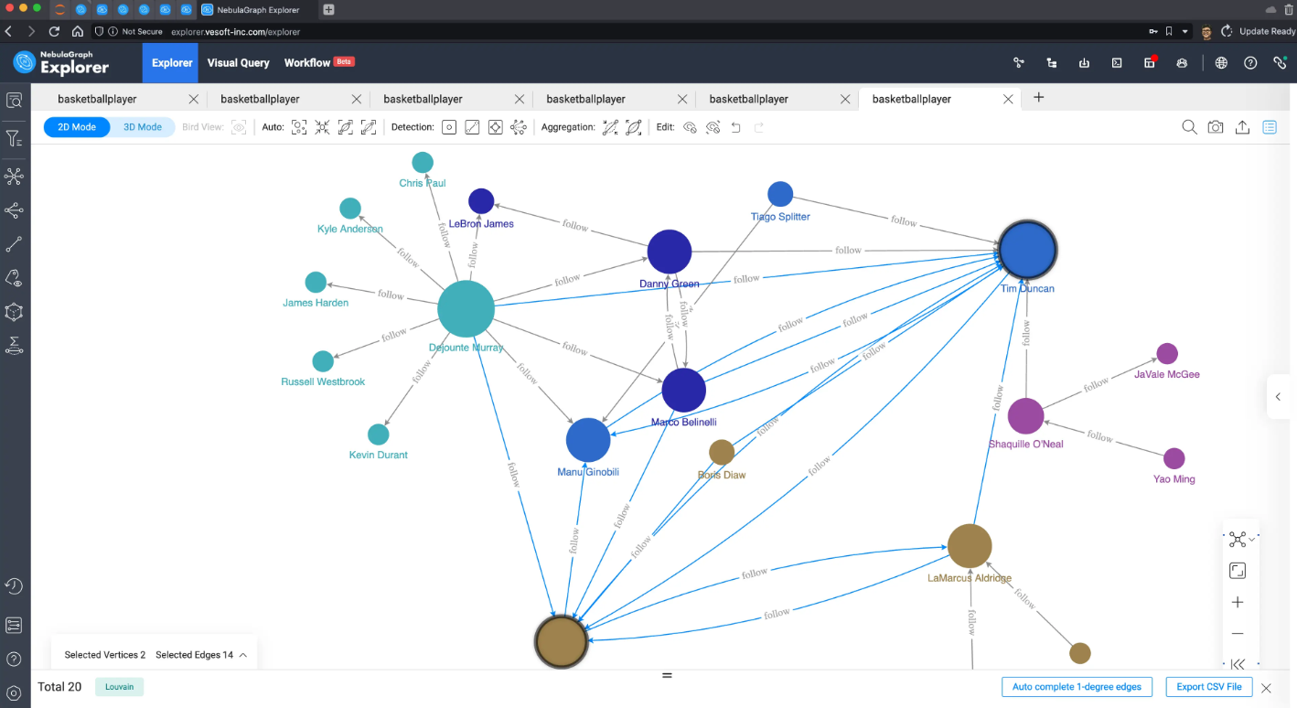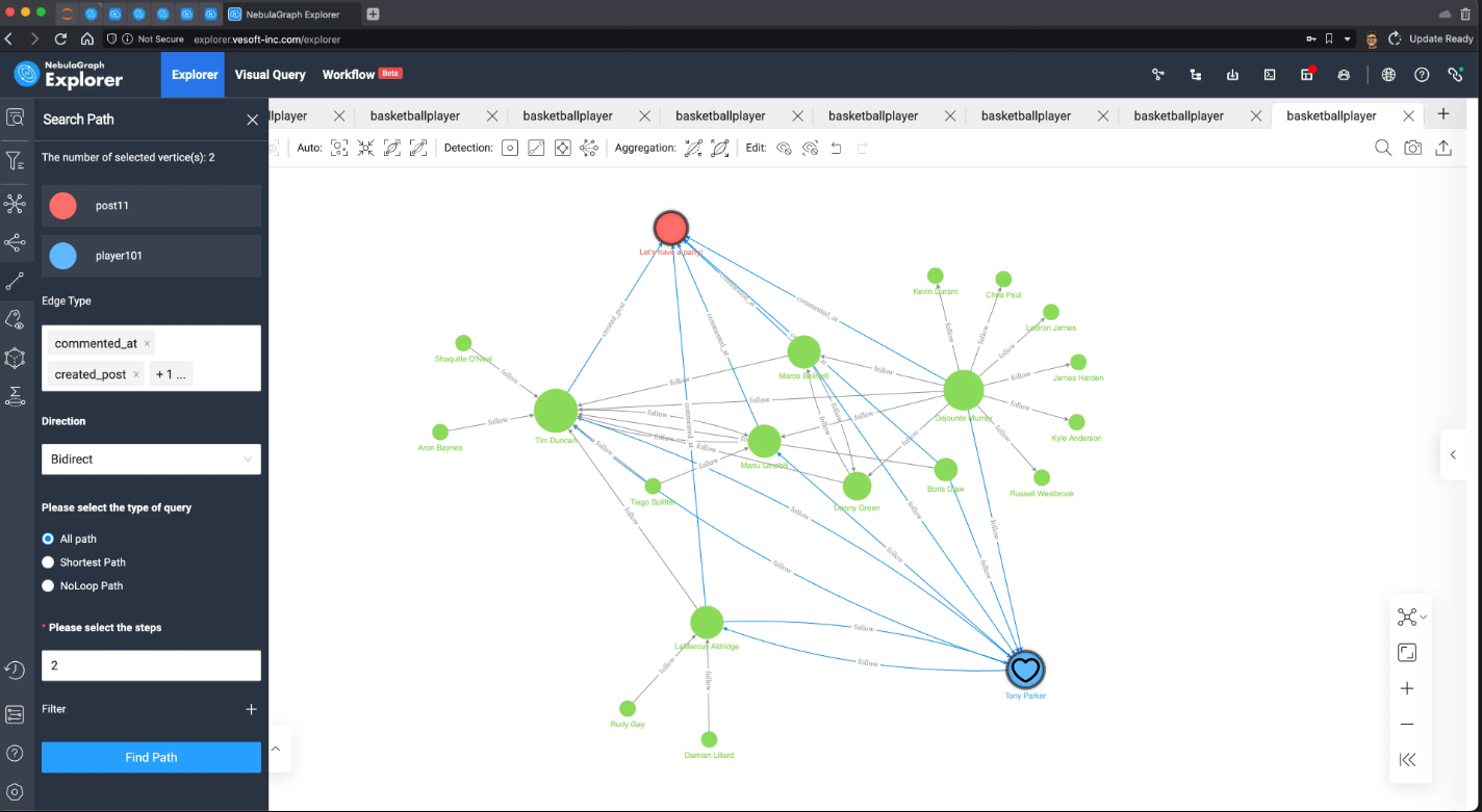 因为数据量太小了,这里可以把所有数据在 NebulaGraph Explorer 中进行渲染出来: