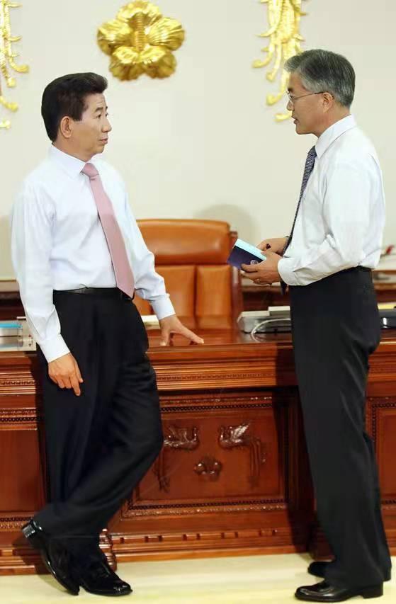 随后,卢武铉安排文在寅担任民政首席秘书官,两人一同进入青瓦台,再一次并肩战斗开始积极参与国政事业。