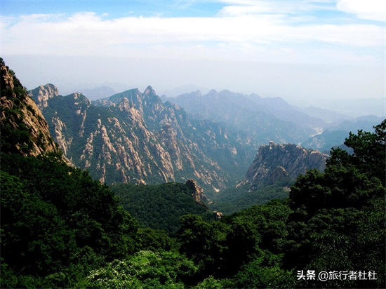 4、秦皇岛祖山:由于渤海以北、燕山以东诸峰都是由它的分支绵延而成,故以“群山之祖”命名。最高峰天女锋,可以看见一座三圣母的塑像,惟妙惟肖,栩栩如生,眺望着远方,真是一览众山小。