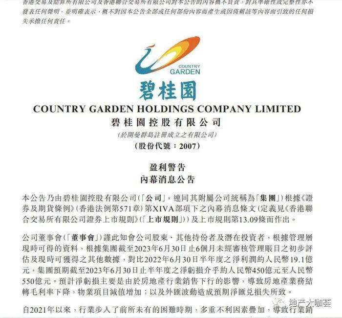 紧接着碧桂园公告,上半年预亏450亿-550亿元。至此,碧桂园要爆雷的消息瞬间在市场上炸开了锅。随后,碧桂园管理层发文致歉,化危机为生机,要锻造更健康的碧桂园。