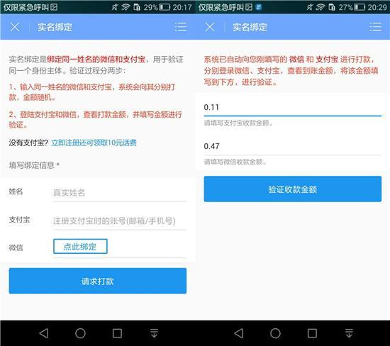 3.1 实名绑定,真实姓名,绑定微信,绑定支付宝,三者名字都要一致,然后会提现你账户余额到你的支付宝和微信账户,把你收到的支付宝和微信的金额,分别填入,以确认都能收到款。在实名绑定的过程中,提现也就实际到账了。如果你提前提现了,那么等账户余额满1元了才能再次实名绑定。