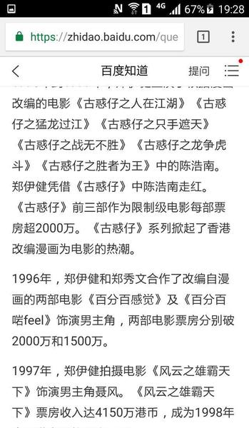 郑伊健拍了古惑仔后真是火的大红大紫,瞬间红遍了大江南北,符合那个年代的年轻一代人的回忆。