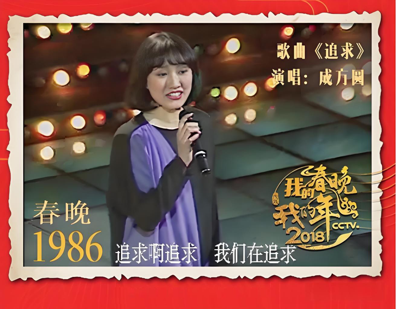 1986年,成方圆成功登上央视春晚,她演唱了《请到天涯海角来》《我多想》《追求》3首歌,深受观众欢迎。