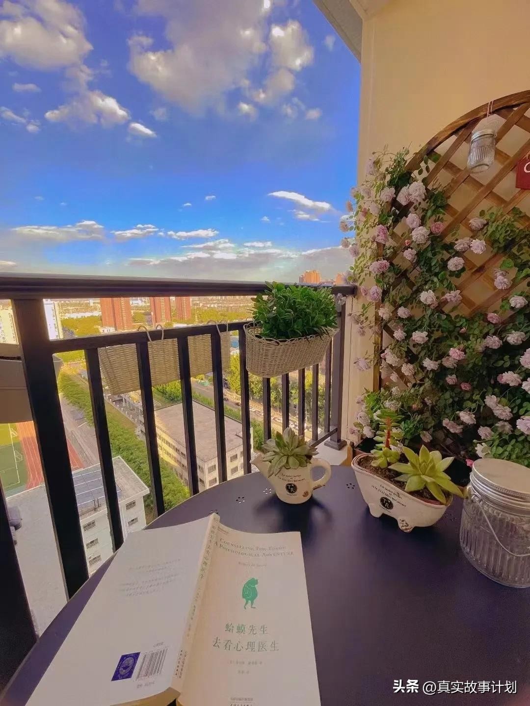 她开始借助这个家尝试经营社媒,举起摄像头,拍摄露台外五点半日出的天空、立夏雨后开放的月季花墙,还有阳光穿过飘窗投在墙上的电影级光影。
