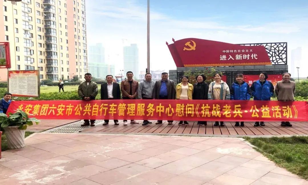 2021年10月20日永安集团安徽六安公共自行车管理服务中心(以下简称永安集团安徽六安运营中心)联合六安市政管理处于10月20日上午共同举办“追寻红色记忆,致敬参战老兵”重阳公益活动。