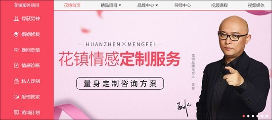 “花镇社区”的主要业务包括俘获男神、婚姻修复、挽回恋情、情感诊断、私人订制、情感管家等。