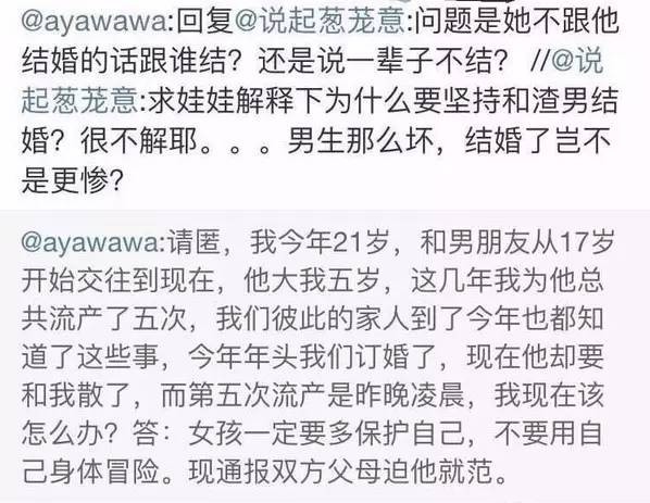 有女孩问她,“我为未婚夫流产了五次,他要跟我分手,怎么办?”