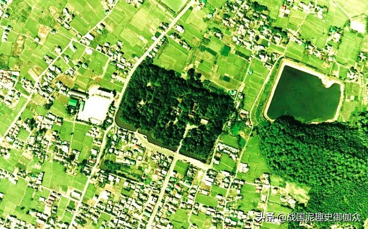 踯躅崎馆(中)与龙华池(右)航拍(1975)