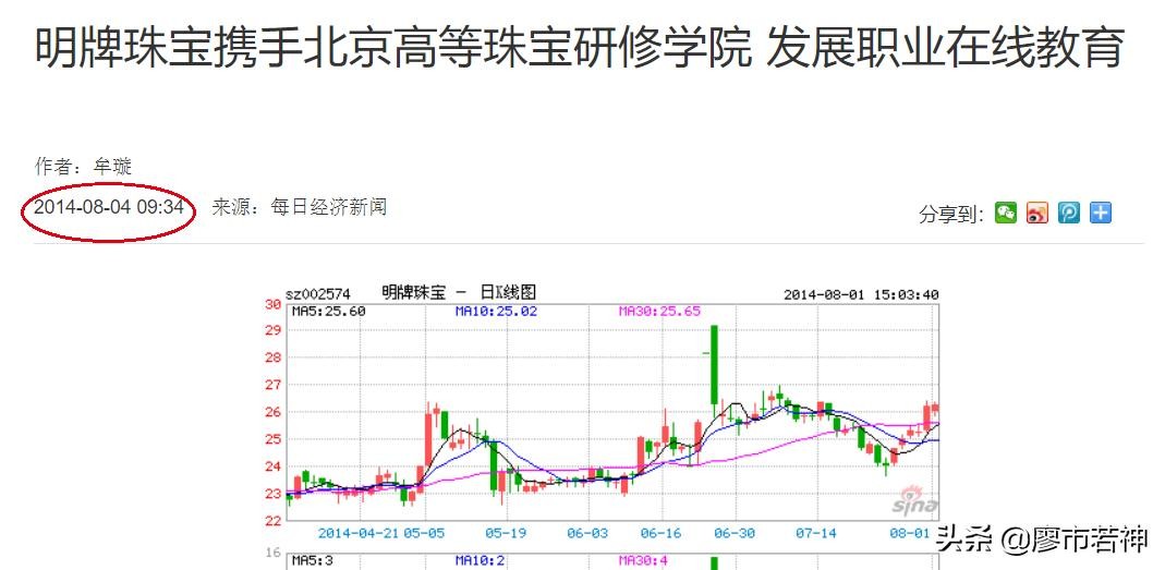果不其然 在泽熙系完成接盘的2个月后,明牌珠宝先是高调宣布与北京高等珠宝研修学院签订在线教育合作,该合作最终被证实没有任何实质进展,纯粹是硬蹭在线教育这个热点题材,之后明牌珠宝又大幅度上调了净利润预期,连续向市场放出了一系列重大利好。