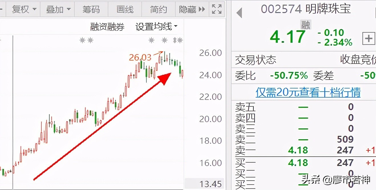 接下来的10月 明牌珠宝谨遵徐翔教诲,连续放出在线教育和上调利润等重大利好,在行业明灯、热门题材、业绩大增等多重因素的加持下明牌珠宝的股价持续走高