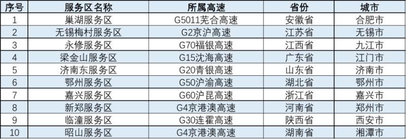 春节期间,全国高速公路预计较繁忙的高速公路服务区,如表3所示。