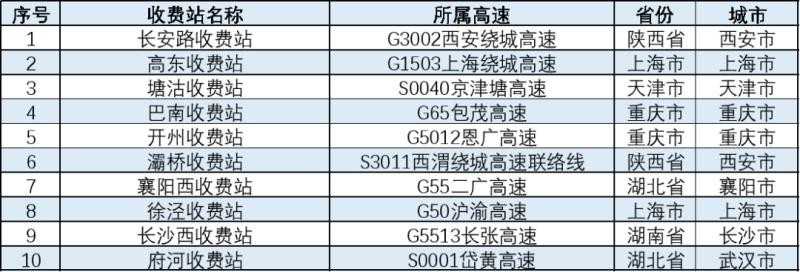 春节期间,全国高速公路预计易发生拥堵缓行的收费站,如表2所示。