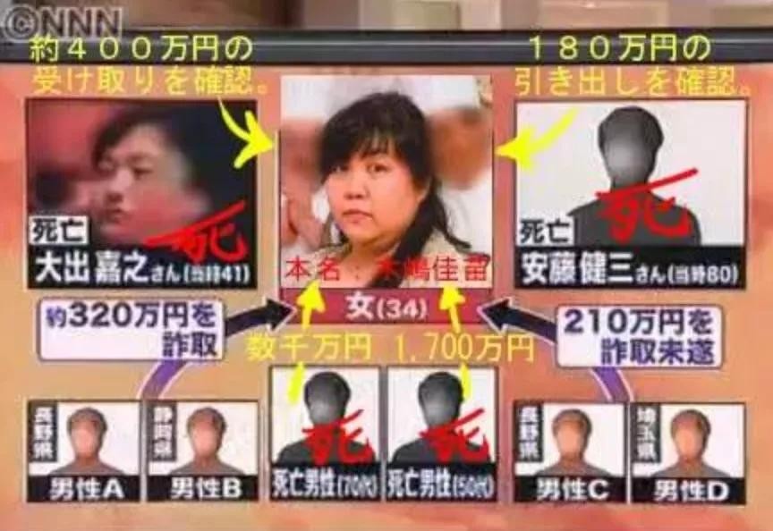 随后,警方发现了三起看似自杀的案件实则都是木岛佳苗一人所为,最终37岁的她被判为死刑。