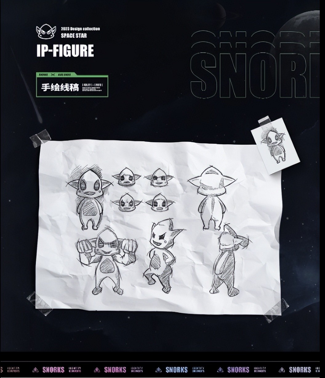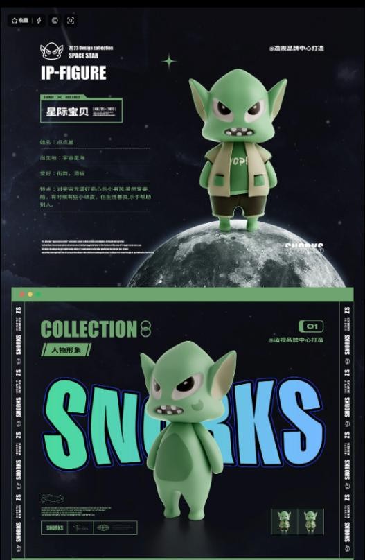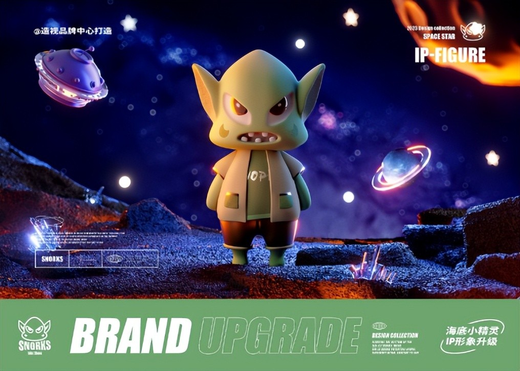创意思路参考星球系列电影,热门IP形象尤达大师,造型灵感来源星球大战《曼达洛人》外星人尤达宝宝的创意,增加品牌风格的独特性,区别可爱风格,更加符合品牌美潮的调性。