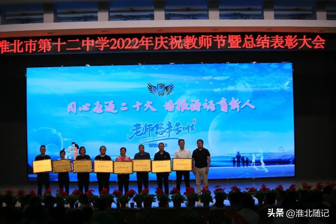 为庆祝第38个教师节,弘扬立德树人风尚,表彰先进典型,凝聚奋进力量,9月9日,淮北市第十二中学在大礼堂隆重举行庆祝第38个教师节暨总结表彰大会。