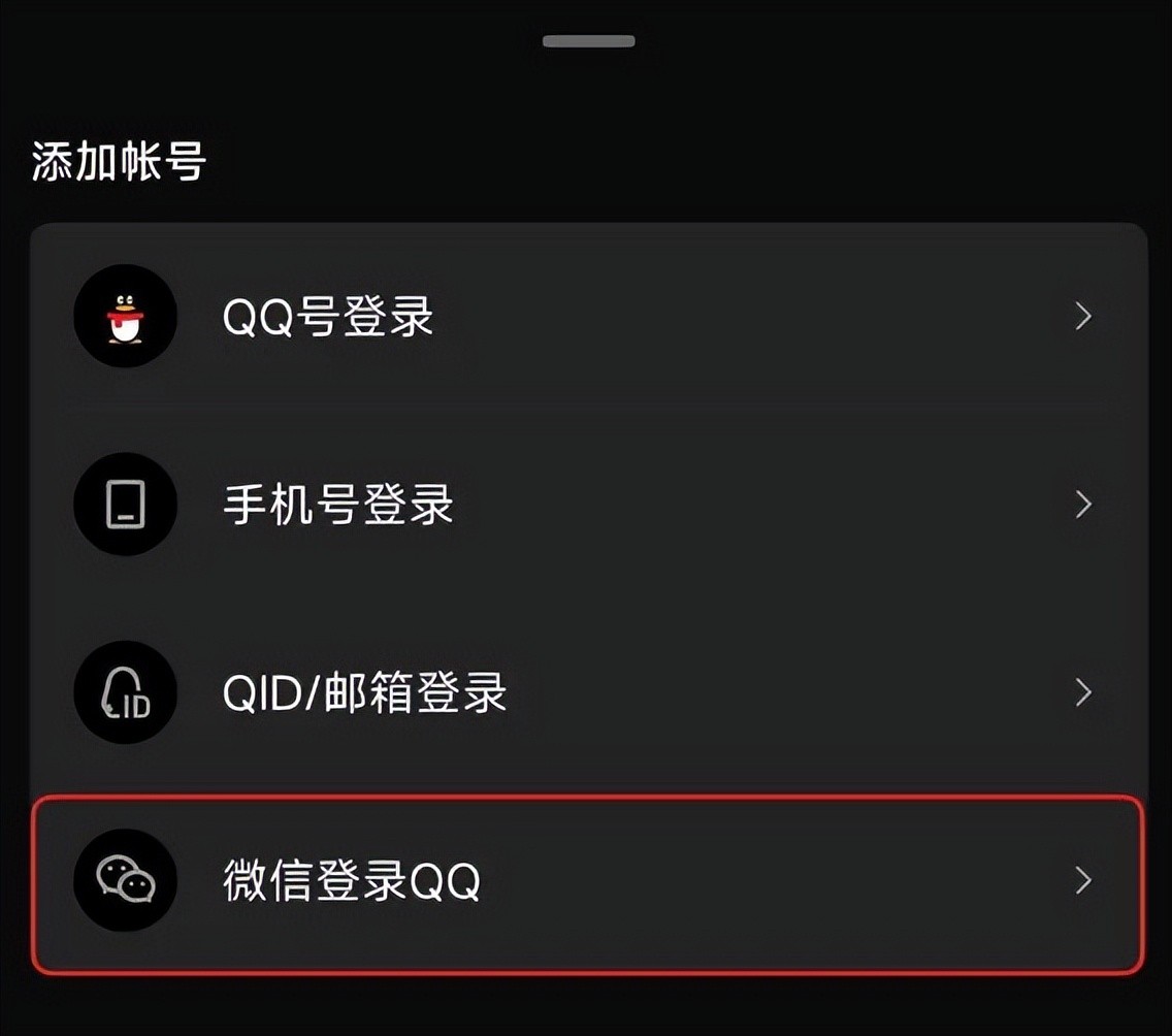 据介绍,在最新版手机QQ的登录界面,除了显示QQ号、手机号、QID/邮箱号登录以外,还新增了一个「微信登录QQ」的选项。