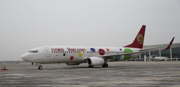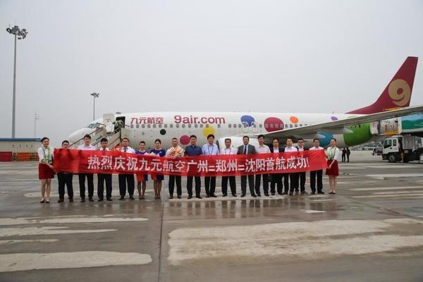 大河网讯(记者 祝传鹏)9月27日8时许,一架航班号为AQ1029的客机从广州飞抵郑州新郑国际机场,喷绘的机身上,一个大大的“9字”格外显眼,此次成功首航后,以广州白云国际机场为主基地,中南地区第一家低成本航空公司——九元航空正式入驻郑州新郑国际机场,此后,该公司将开通郑州飞广州、沈阳的低成本航线,这也是郑州、广州两地之间的首条低成本直飞航线。