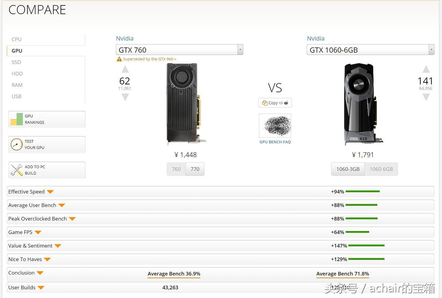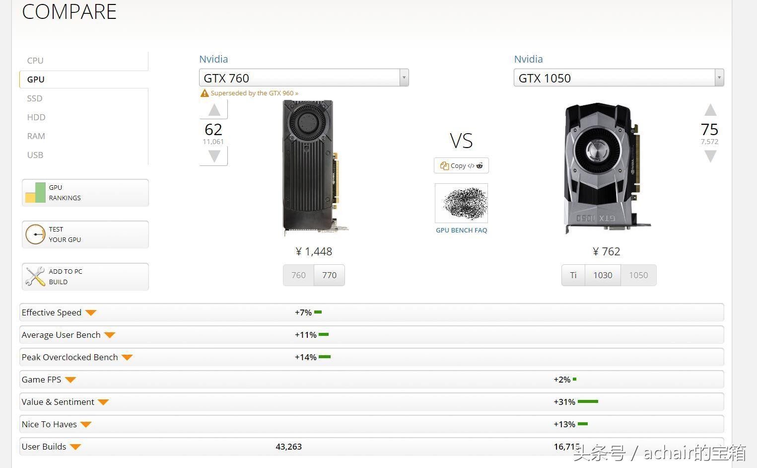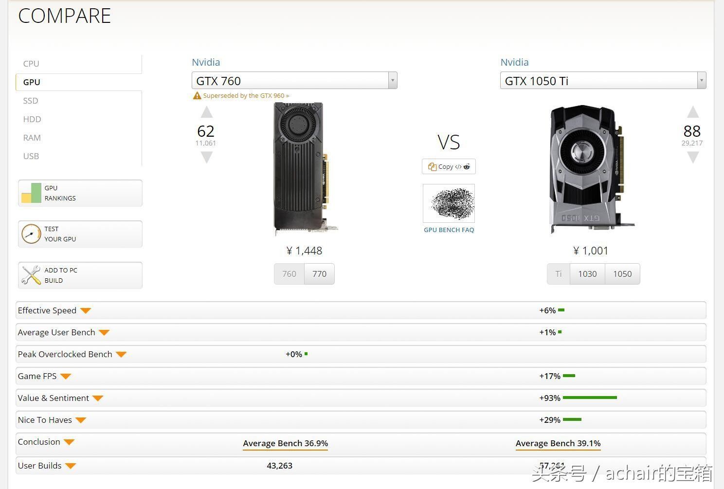 9 GTX 760 比GTX 1050 Ti弱6%,GTX 1050Ti现在新的价格1000-1200元。