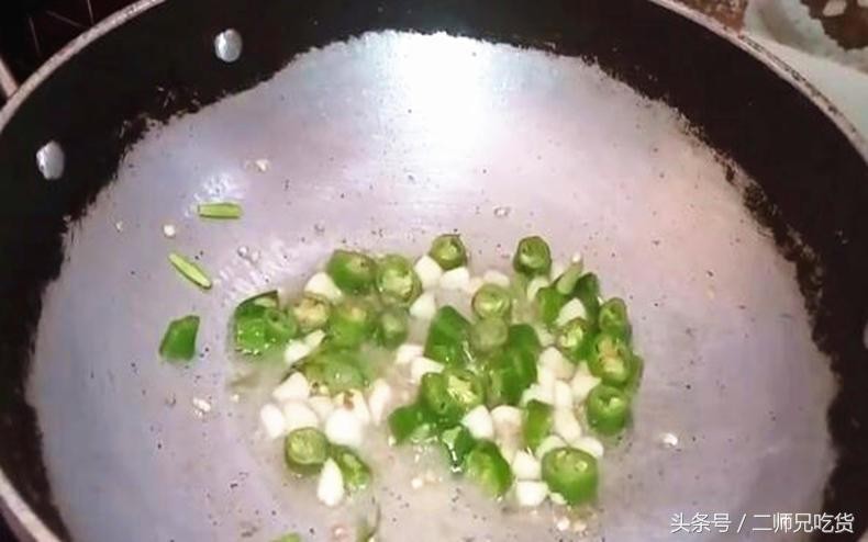 2.印度小哥在锅里热油,然后放入蒜末和青椒爆香。