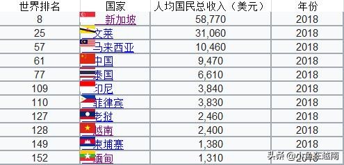 以上是2025年世界各国人均国民总收入,中国排名61,人均9470。越南排名128,人均2400。