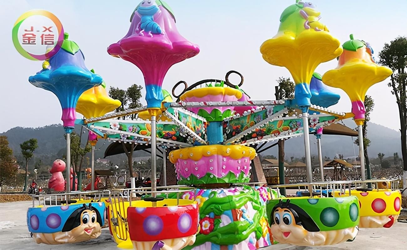 逍遥水母,又称虫虫部落,是中山市金信游乐设备有限公司自主研制生产的一款小型的游乐设备。逍遥水母比摇头飞椅的使用地形更加广泛,它将五颜六色的气球和漂亮的座舱结合在一起,产品集升降、公转、自转于一体,加上欢乐的音乐、可爱的造型,十分有趣。
