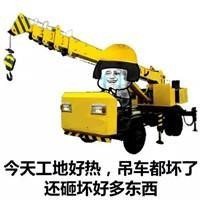 今天工地好热,吊车都坏了,还砸坏好多东西
