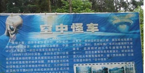 1994年12月1日零辰,在贵阳市郊区的都溪林场四周,传出来了一股十分伟大的声响,四周住户都被这股声响吵醒了,声响的泉源是一个发出赤色和绿色强光的空中怪车。几分钟后,很多书籍都被这个怪车拦腰折断,有的断树之间坦然无恙,少量几根居然被连根拔起,一些小树上还有揩碰过的陈迹,这没有得没有令人沉思这个空中怪车终归是什么物品。