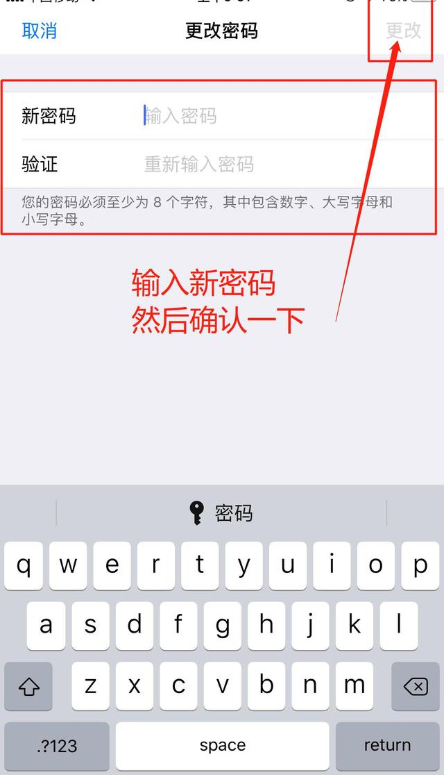 输入新的Apple ID 密码后,点击“更改”就能生效啦