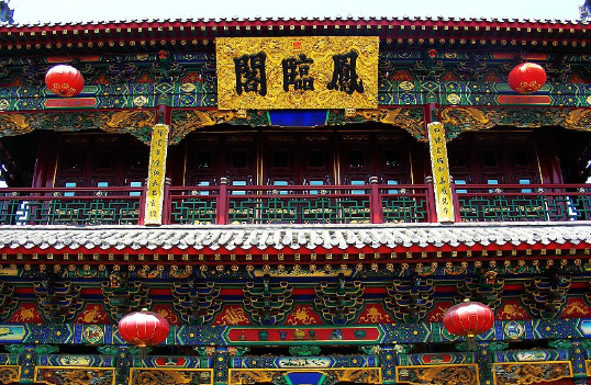 凤临阁的正门上飞檐斗拱,雕梁画栋。进入门内,曲栏回廊,景观各异,汇聚了中国古代建筑诸多风格。精美绝伦的雕刻,朔像,书画,置于各个庭院,墙面,栏柱以及角落,刻画出了大同的历史,古迹,传说……凤临阁将历史文化,建筑文化,民俗文化,与饮食文化融汇一体,形成了独具风貌的“凤临阁文化”,与大同的古城文化交相辉映。