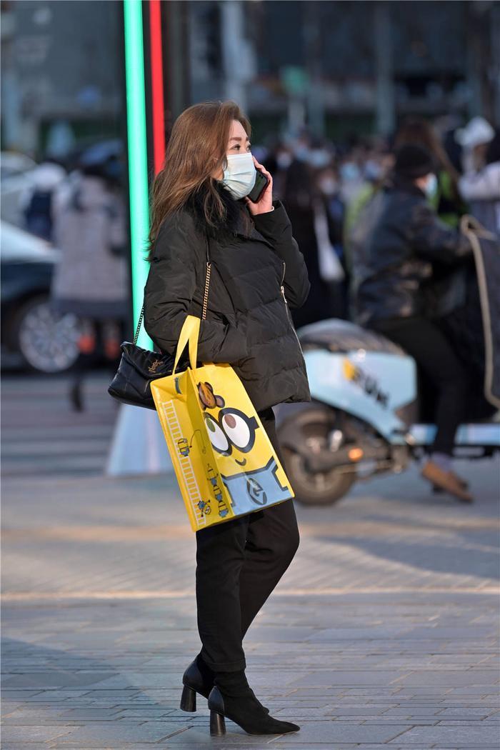 其实短靴的风格也有很多,看你怎么挑选,这位美女选择款式很简单,一款拼接色的尖头须根短靴,圆柱形的粗跟,还能独特,5厘米的高度,衬托身材高挑,又不会很累,搭配出简约的味道,黑色修身长裤,遮住短靴一部分,显身材苗条一些,上衣是短款羽绒服,黑色款式,稍微有些蓬松的风格,非常简约的搭配,一款黑色的皮包,这样增加质感,让黑色搭配不显单调。