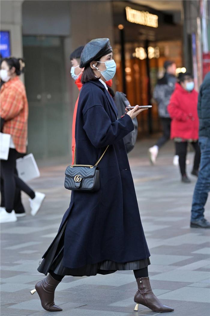 其实很多人选择搭配也是比较简单的,冬季选择短靴,是为了更有层次感,选择高跟款式,是为了表现自己生活态度,搭配是为了让自己更好看,也穿出简约时尚的感觉,这位美女选中一款棕色的尖头高跟短靴,细跟是斜着的设计,猫跟的款式,很独特,搭配黑色打底裤,这样保暖还是时尚,搭配出精致优雅的味道,深蓝色的呢子大衣,里面是一款黑色的连衣长裙,非常精致的搭配风格,头上的黑色皮毛,也显得人很时尚。
