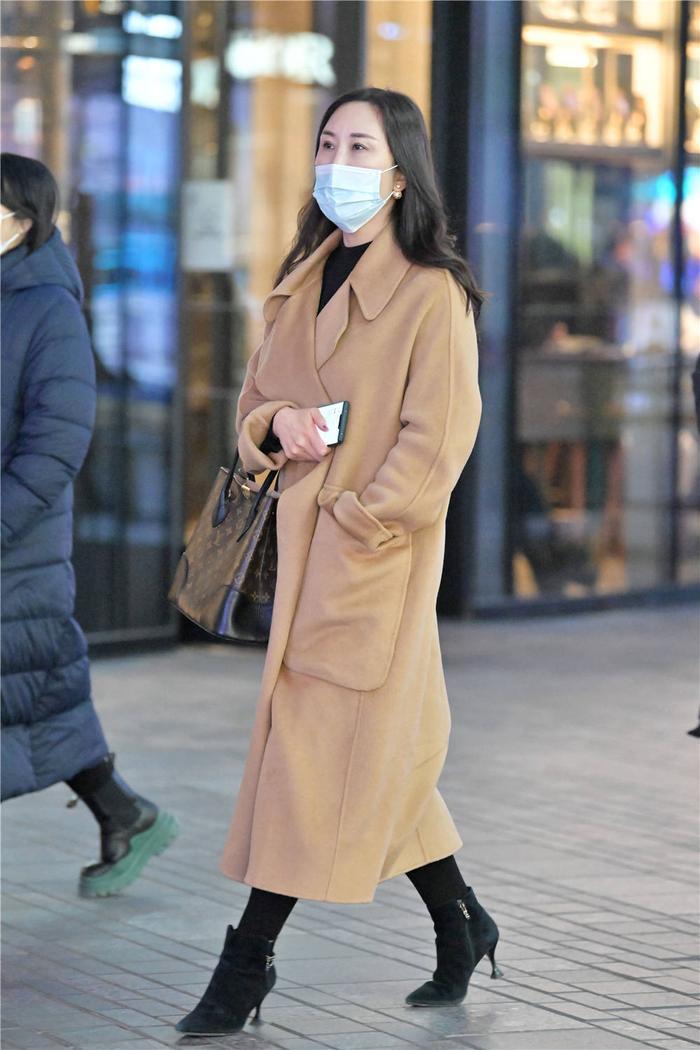 短靴搭配,冬季里是比较常见的,每一位姑娘都会搭配出不一样的感觉,这样才会变得更加繁华,看一下这位美女的搭配,选择一款黑色尖头细跟,是踝靴的设计风格,显得比较简约,鞋跟不是很高,很多人喜欢这样的简约设计,搭配出时尚的味道,穿搭是为了更美一些,黑色打底裤,修身效果好,也很保暖,外面是浅棕色的呢子大衣,美女把衣襟裹起来,这样会更暖和一些。
