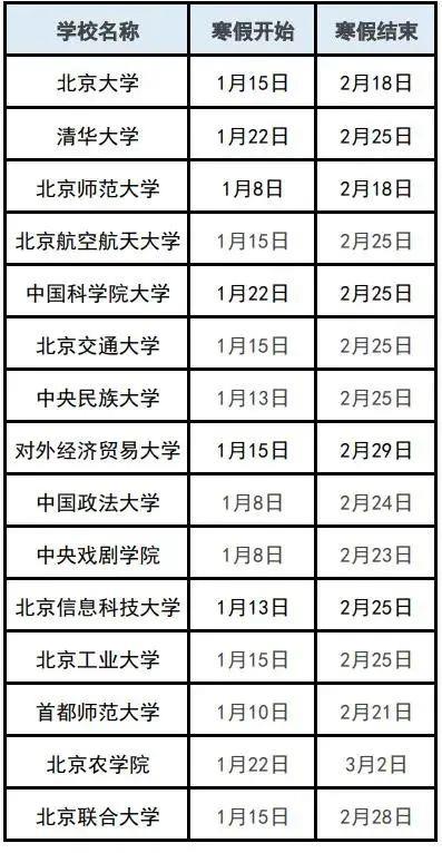 近日,多所高校寒假时间公布