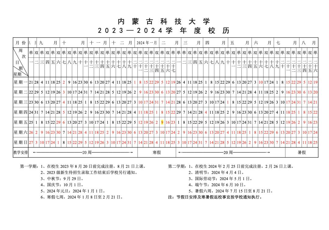 寒假:1月20日-2月23日