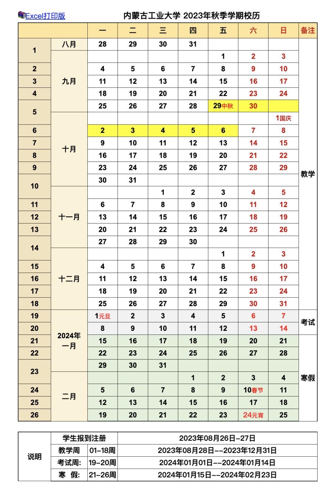 寒假:1月20日-2月26日