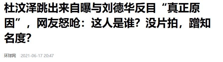 环球网:杜汶泽跳出来自曝与刘德华反目“真正原因”。网友怒呛:这人是谁?没片拍?蹭知名度?