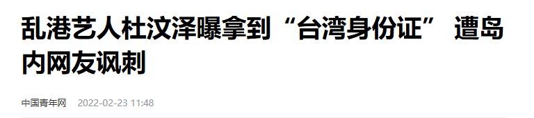 中国青年网:乱港艺人杜汶泽曝拿到“台湾身份证” 遭岛内网友讽刺