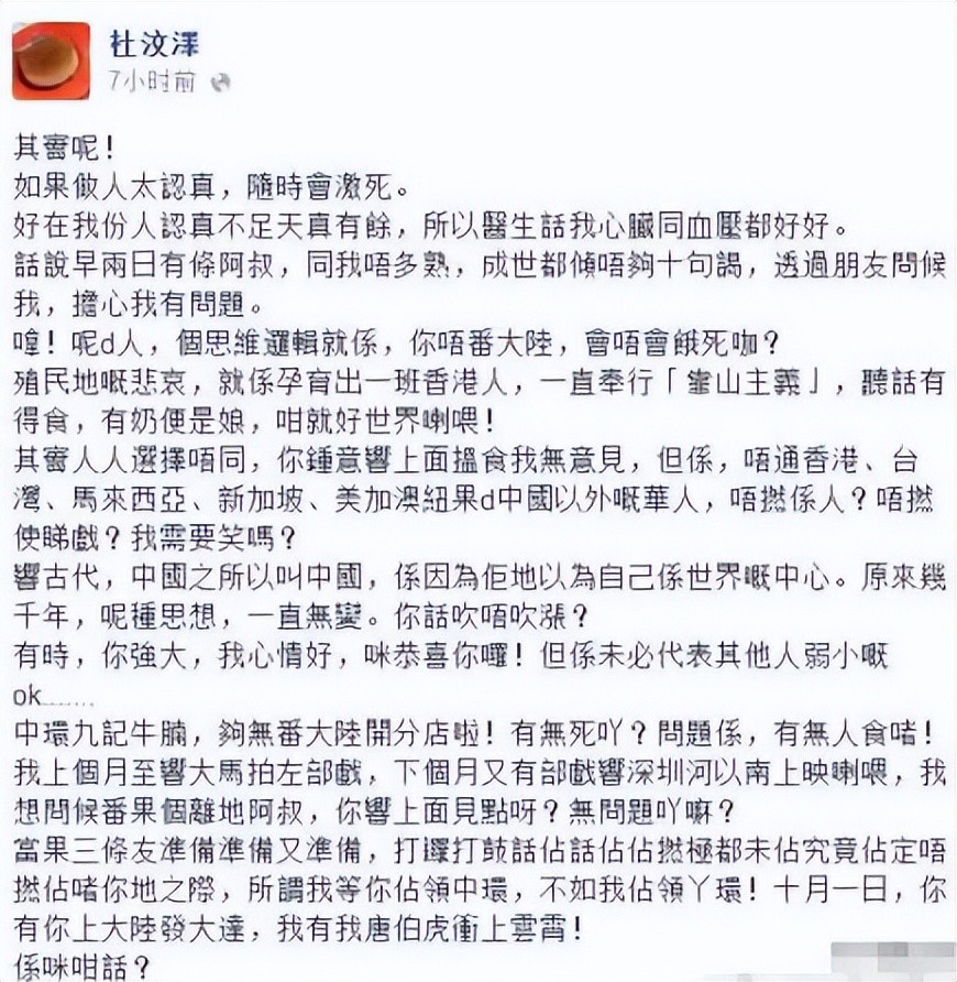 今日头条:报应?曾经诋毁内地的“港独”艺人杜汶泽,现窜逃台湾、经济窘迫