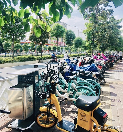 几分钟便来到红绿灯,对面就是万达广场,路边还停着许多电动车。