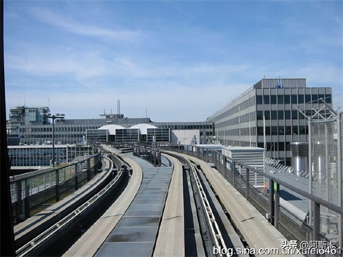 连接一号和二号航站楼的免费Sky Line。无人驾驶,两分钟发一次车,十分方便。远处是第一航站楼。