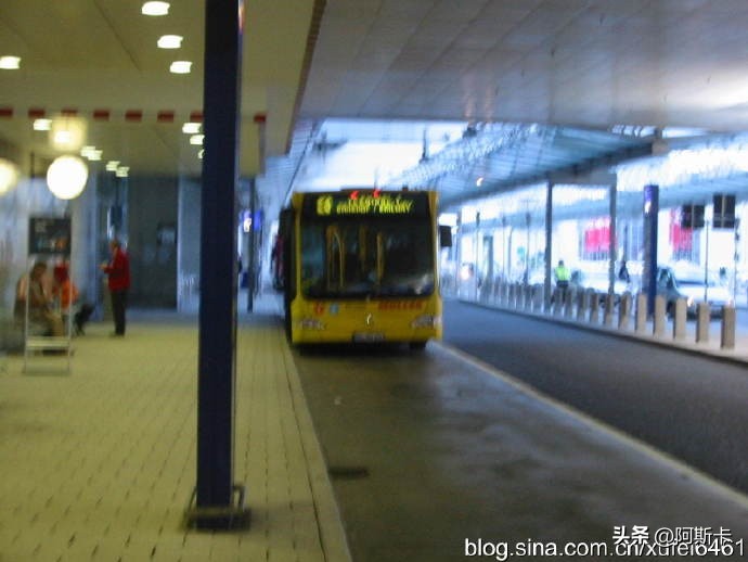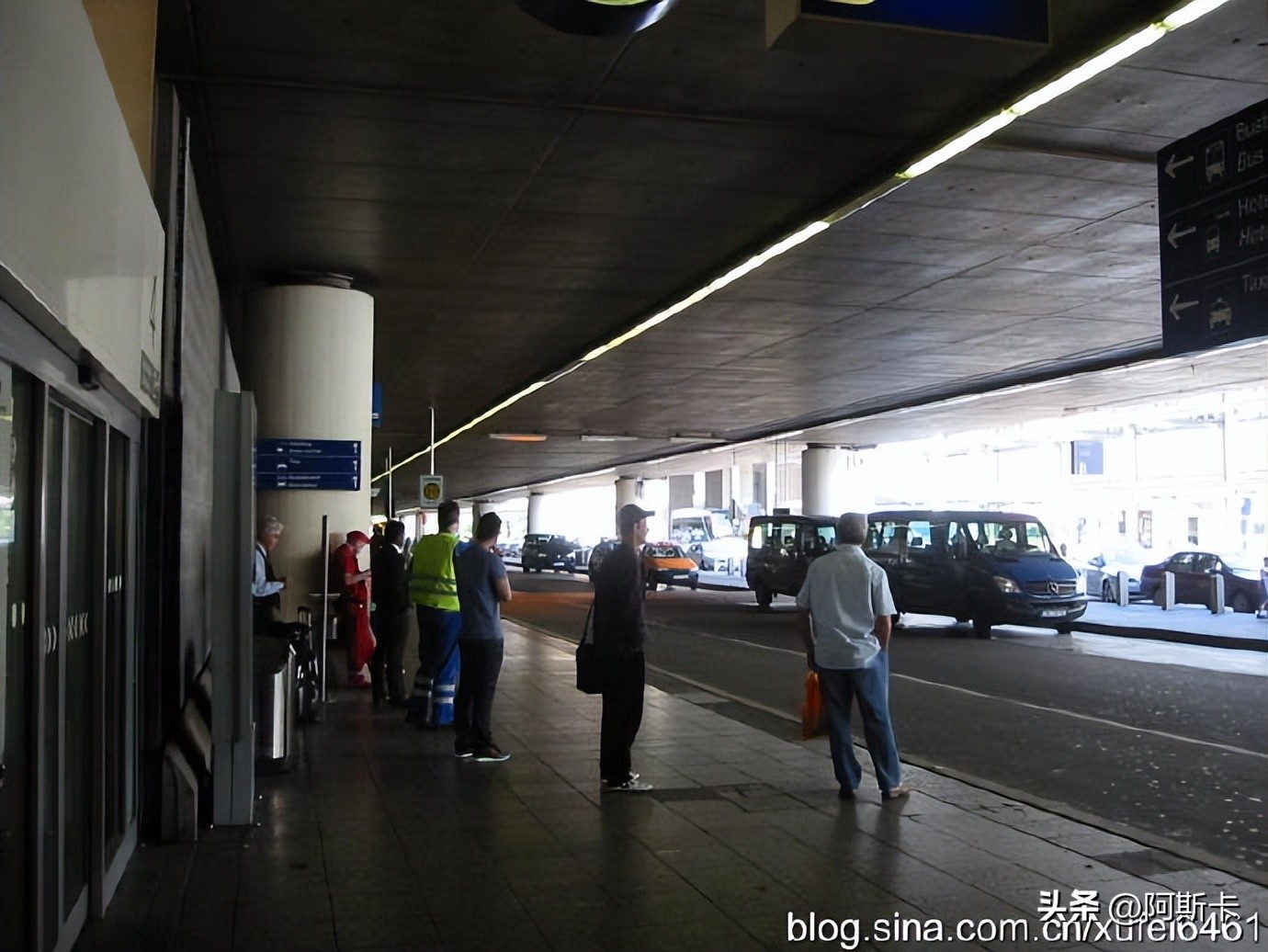 图为一号航站楼,去各大宾馆的巴士等候处。