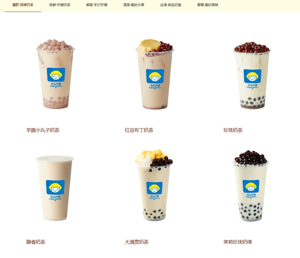 时至今日,快乐柠檬官网的“爆款招牌奶茶”,还是一些我们耳熟能详,都快喝烂的奶茶: