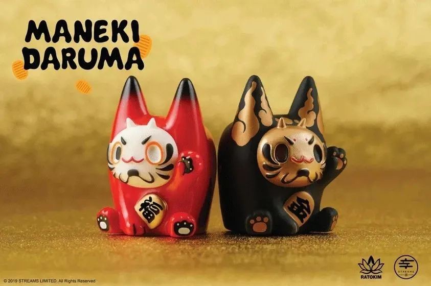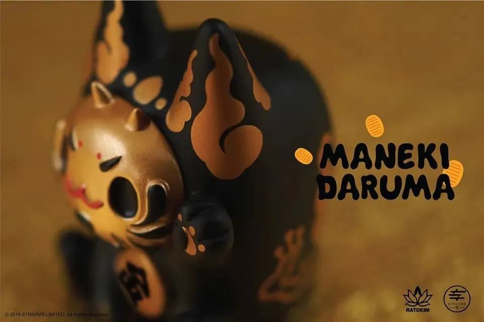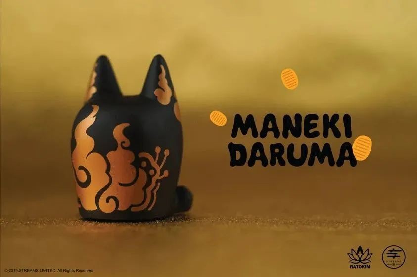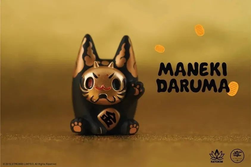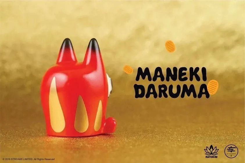 Maneki Daruma由设计师Rato Kim创作。他将同样具有招福幸运象征的招财猫和达摩的脸结合在一起,打造出这只半猫半达摩的形象,可爱又喜气。