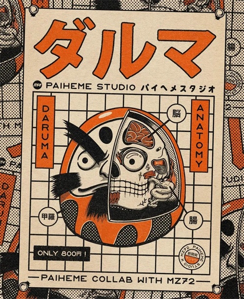 这个复古和风的达摩来自于Paiheme Studio为MZ72所做的达摩形象设计。