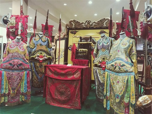 梨园簇锦主要展示各种题材的川剧剧目,舞台表演形式,这个房间的道具是最丰富的。
